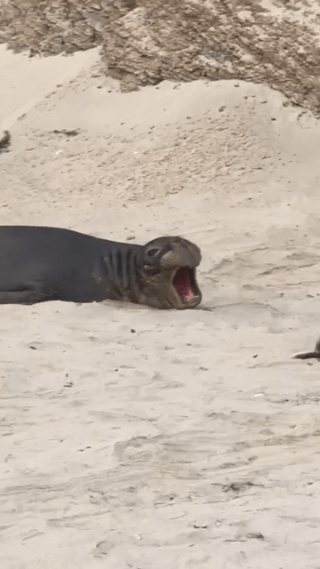 As far as activities, one of the guys decided he was going to go on a training run around the island, as he was training for a 50-mile race coming up. The only problem was he had to get off the beach and the only way out was to scale a cliff. Because the seals were piled all over the canyon entryway, he could not get past them to scramble up the canyon, so he had to find another way. He eventually scaled a cliff using all four limbs through the scratchy shrubs and made it to the top, waved at us from 250 feet up and ran off. He told us not to worry unless he wasn’t back by 1pm. We wondered what the hell we would do if he did not show up at 1pm, because there would not be much we could do.