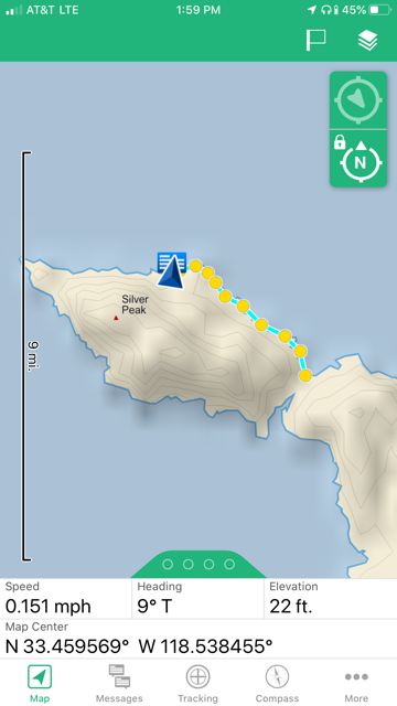 When I opened my eyes a moment later, I realized I was moving at a pretty solid clip, and to my complete surprise, I was moving toward Avalon. This meant that the same western swell that had propelled me down the island most of the day, was now whipping around the end of the island toward Avalon. This was a most unexpected gift from Poseidon!