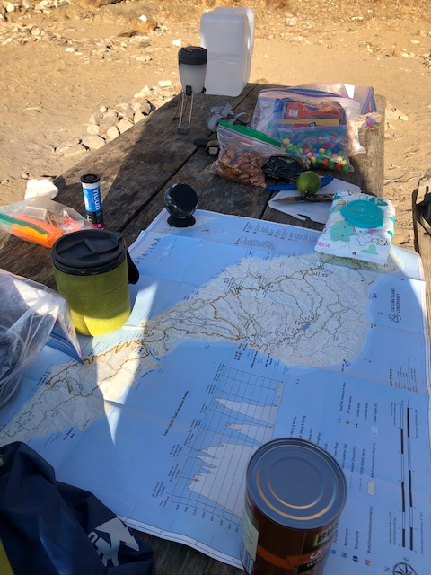 I finally got myself out of the sleeping bag at around 6am and walked gingerly in the dark to the porta-potty. My legs and back were sore. My hands were swollen. With my headlamp on, I boiled water for tea and oatmeal. I then downed a Kind Bar and dried mango. No dehydrated breakfast eggs this time.