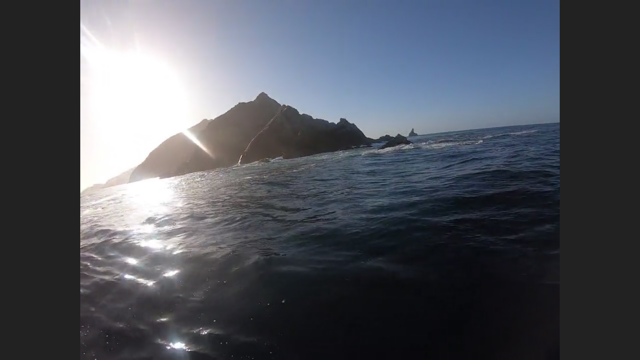 The ocean’s surface was calm, the sun was bright, and very few clouds floated above. It was hot when I arrived on shore, and I worked up a good sweat inflating my board. I loaded up and I was off, reliving my paddle from the year before.