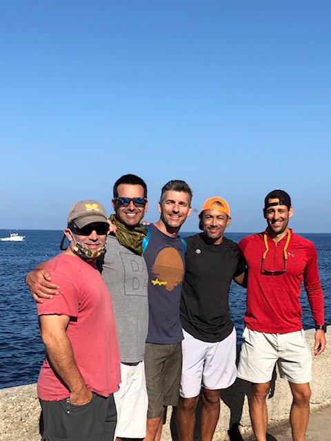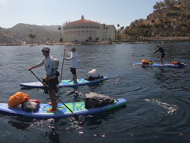Kenny and I caught up with the guys in Avalon, in front of the casino. We paddled up to the dock, carried our boards up the ramp, rolled up our boards, checked our bags and boards, and sat down for a few cold beers before our boat ride home.