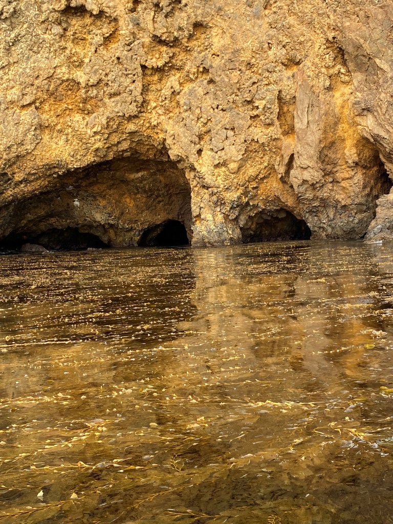From time to time, inside some of the caves I ventured into, I found hidden rocky beaches, some a full 25 yards inside the cave. The waves smashed and crashed on this hidden beach, and the dark water filtered through innumerable smooth rocks in an almost deafening roar. It was easy to imagine ancient pirates hiding a treasure chest in such a cave, and because I had been on Disneyland’s Pirates of the Caribbean 100 times in my life, it was also easy to imagine a skeleton with an eyepatch sitting on that treasure, brandishing a cutlass.