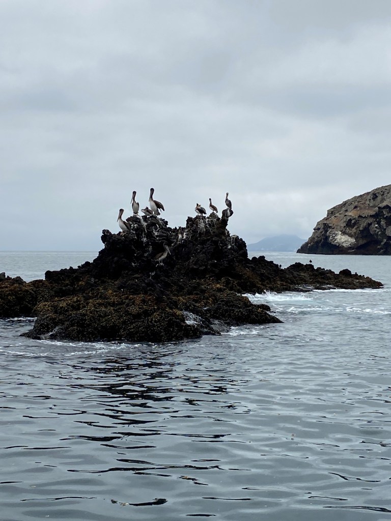 The birds were everywhere. There were pelicans resting on every imaginable pedestal that had been providentially carved by the sea over eons. There were colorful and agile oyster catchers swooping and diving around me, hooting with their exuberant cries. There were skimmers that dove to snatch up the smaller fish that ventured too close to the surface. There were the cormorants, swimming out of the way of my board and diving deep like under the water like penguins to catch their meals.