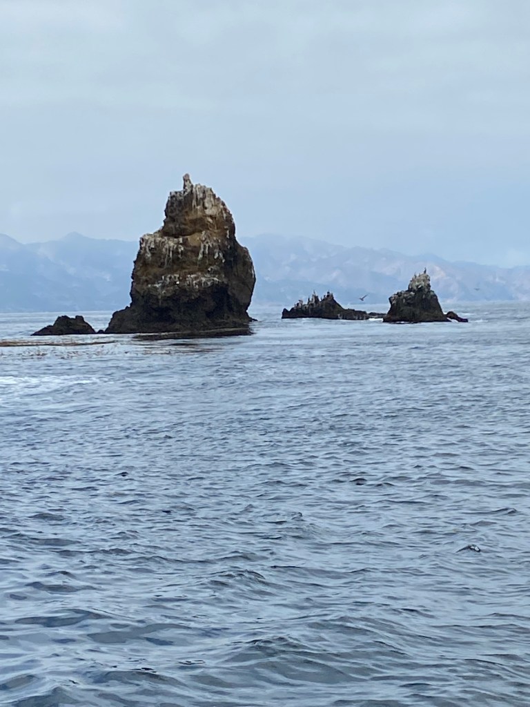 The ocean continued to breathe underneath me. I sat down cross legged on the board. I read the text over again. I looked at the island, in the direction the sea lions were last seen. Just to my right was a large spearhead of rock piercing the water, and pointing at the sky. A colony of mussels coated the bottom third of the rock. Higher, the rock was white with the excrement of various kinds of birds. Many of the local residents sat there, looking at me, warily.